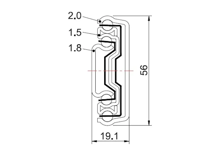 Full details of the fixing patterns and lengths and loads are set out on the datasheet. Bright zinc plated mild steel with positive stops in the closed and fully extended positions. The bearings are hardened steel with chrome plate. The locking lever is made from hi-visibility red nylon on steel. Dimensions are for the closed length of the slide body. Add 34mm for the red front latch, which controls locking in the closed and fully extended positions.